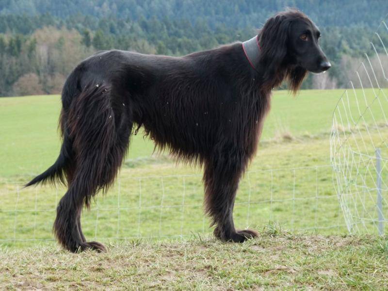 У борзых шелковистая мягкая шерсть, образующая покров мелкими завитками. Стандартный окрас породы – белый, черный с подпалом. Внешне русская псовая похожа на афганскую и лишь профессионал может заметить отличия.