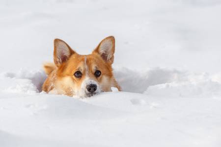 корги в сугробе
