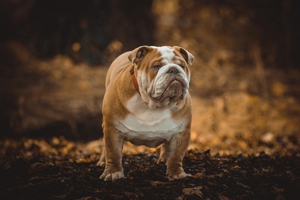 От английской разновидности породы произошли все виды бульдогов. Это собака, чей вес достигает 25 кг, а высота в холке – 40 см. Окрас разнообразный: тигровый, красный, коричневый или рыжий с белыми пятнами.