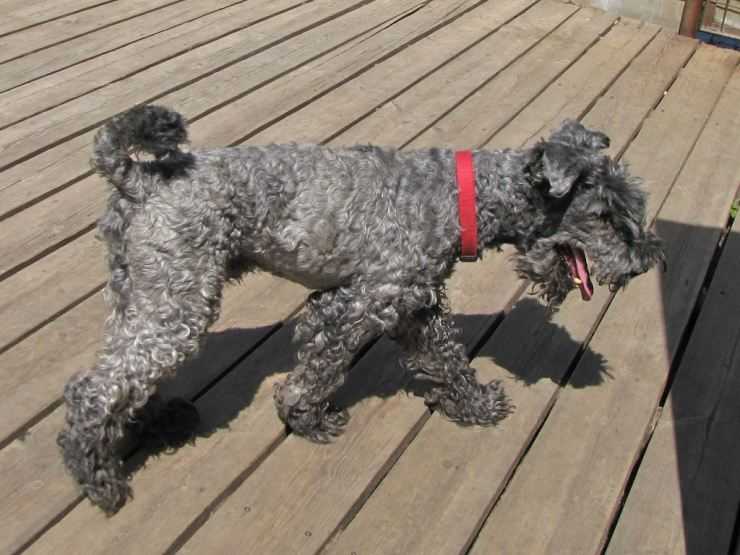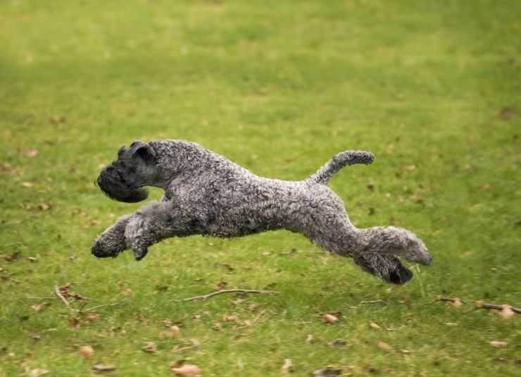 Описание движений: керри блю терьер бежит свободно и прямолинейно. Передние конечности хорошо выносятся вперед, а задние дают мощный импульс всему телу. При этом линия верха остается ровной, голова и хвост держатся максимально высоко.