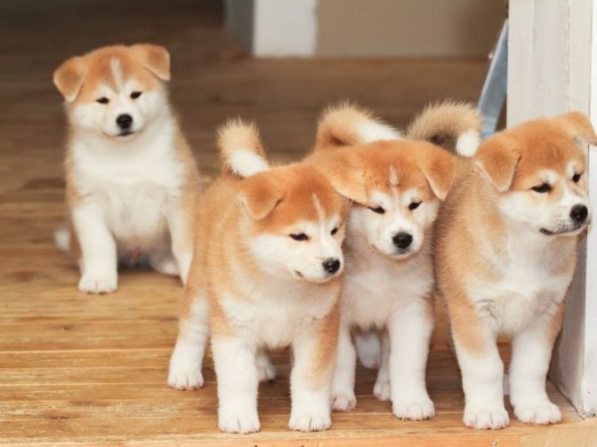 Щенков породы акита-ину в первые три-четыре недели следует держать на материнском молоке; после можно начинать вводить в рацион готовые корма.