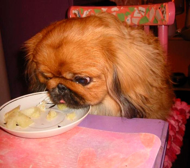 Подбирая рацион для пекинеса, следует учитывать особенности этой породы. Дело в том, что у них присутствует некоторая недоразвитость клыков. Поэтому мясо для них следует прокручивать на мясорубке, а от сухих кормов лучше отказаться или же предварительно размачивать гранулы.