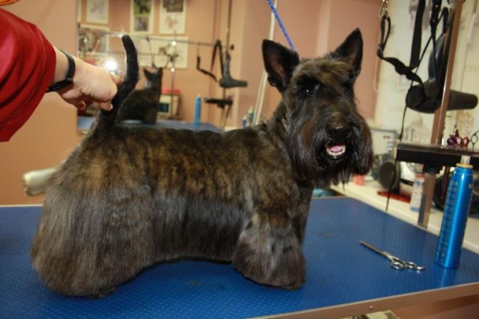 У шотландцев жесткая и длинная шерсть, потому уход за ней должен быть регулярным. Минимум дважды в год нужно делать стрижку. Чистится шерсть питомца щеткой ежедневно, брови и бороду тоже надо расчесывать. Периодически стричь шерсть на спине и голове. Мыть питомца можно по мере загрязнения.